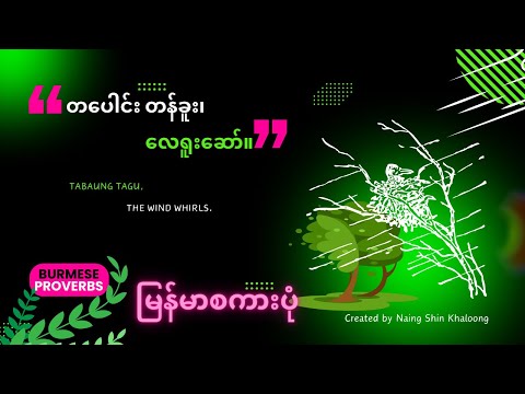 တပေါင်း၊ တန်ခူးလများတွင် လေရူးများ ဖြစ်ပေါ်တိုက်ခတ်သည်။ The meaning is - in the months of Tabaung and Tagu, strong wind occurs and gusts of wind arise and lash. (Burmese weather)